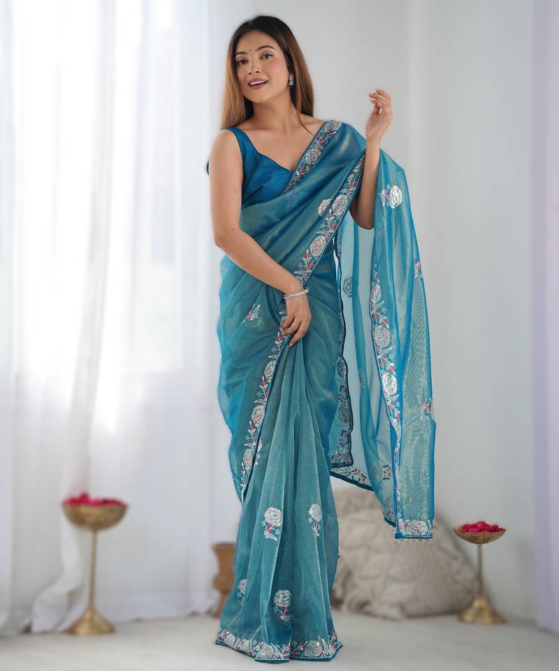 • Product Id : 4708753 • Package Details : 1 Saree/1 Blouse • Type : Art Silk Sarees • Region : All • Work : Embroidered • Type : Sequins Work • Width : 45 Inches • Length : 5.5 Metres Stitching [+]