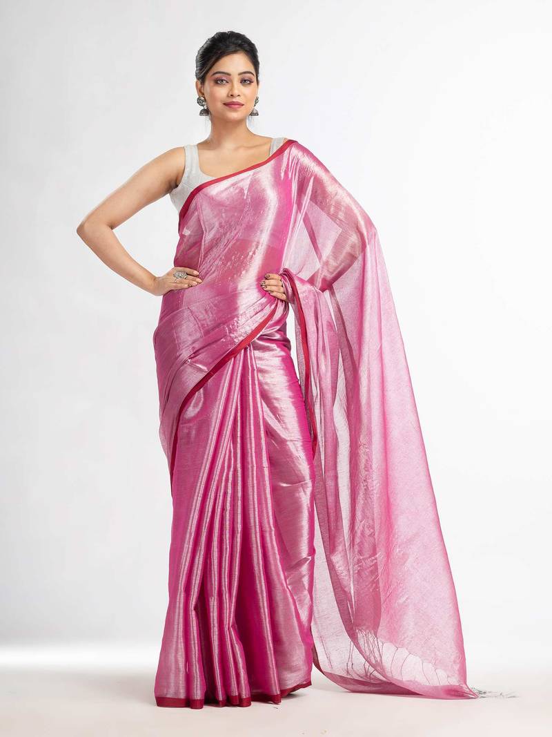 Pink Tissue Cotton Solit Haif Inchi Border Saree