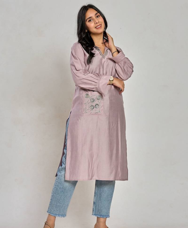 • Product Id : 4674488 • Package Details : 1 Kurta • Type : Short Kurtis • Fabric : Rayon • Work : Plain • Type : Patch Work • Look : Contemporary • Sleeve : Full Sleeve • Neck Style : V Neck • Color : Lavender • Stitching : Stitched • Length : 38.0 Payments [+]