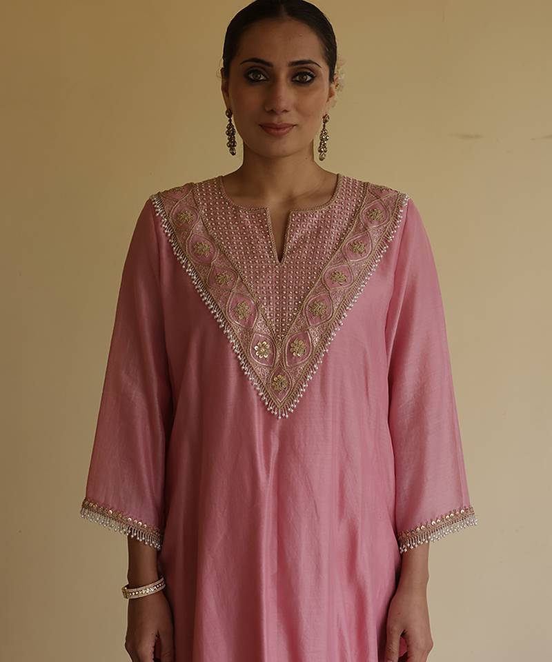 Pink Embroidered Chanderi Kurta Set