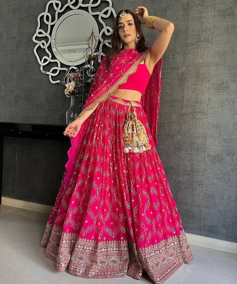 • Style : Circular Lehenga • Fabric : Georgette • Work : Embroidered • Color : Pink Dupatta Details