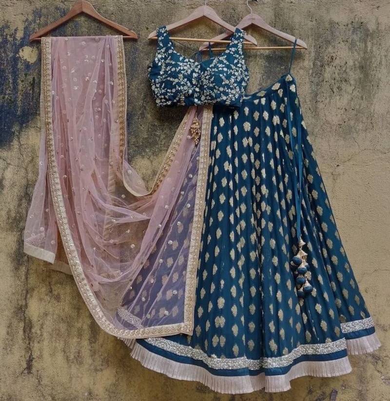 Tealblue Banarasi Georgette Stunning Lehenga Choli With Dupatta