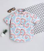 Multicolour Cotton Half Sleeves Swirl Printed Mandarin Collar Shirt For Girls And Boys