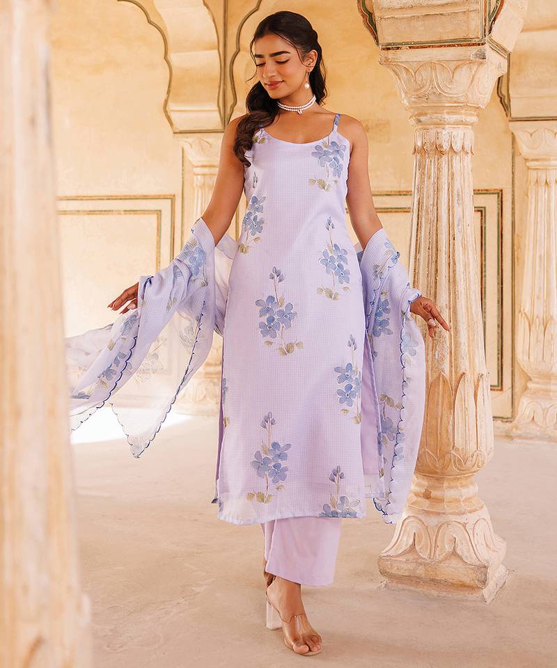 If you find the product for less we'll match it! Know MoreThis Lavender Printed Cotton Kurta Set Showcases Soft Hues With Delicate Prints, Creating A Soothing And Elegant Look. The Breathable Fabric Ensures Comfort, Making It Ideal For Daily Wear. A Stylish Yet Relaxed Outfit That Blends Simplicity With Modern Charm Beautifully.