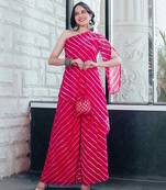 Pink Color One Shoulder Women's Kurta Set is a stunning ensemble designed to make a statement. Here's what you can expect: