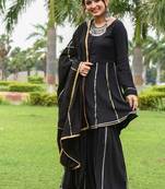 Traditional Wear Black Embroidered Suit Set Heavy Gotta Work Suit Set With Dupatta