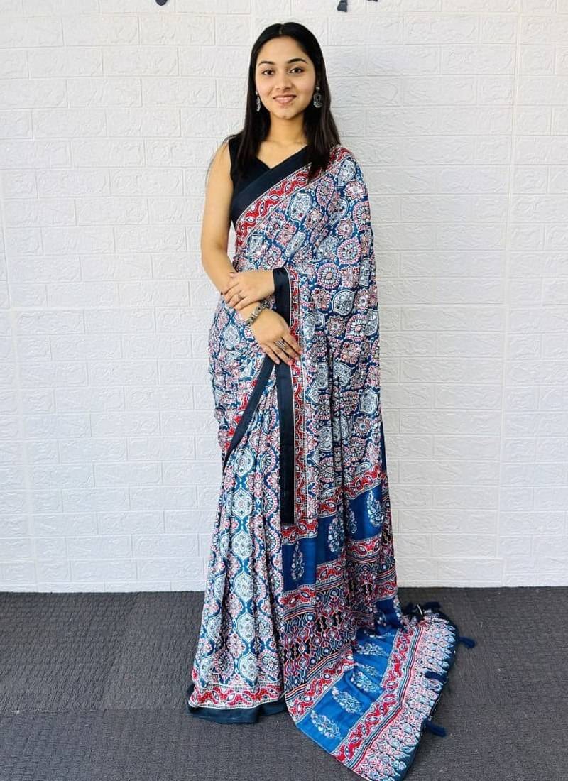 • Border : Heavy Border • Fabric Of : Satin • Color : Blue Blouse Details