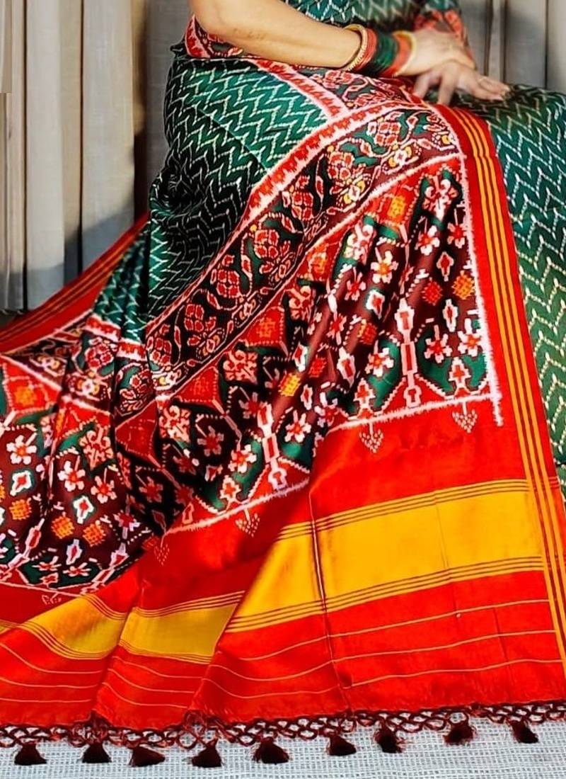 Green Color Lagadi Patta And Weaved Zari Border Work Silk Patola Saree