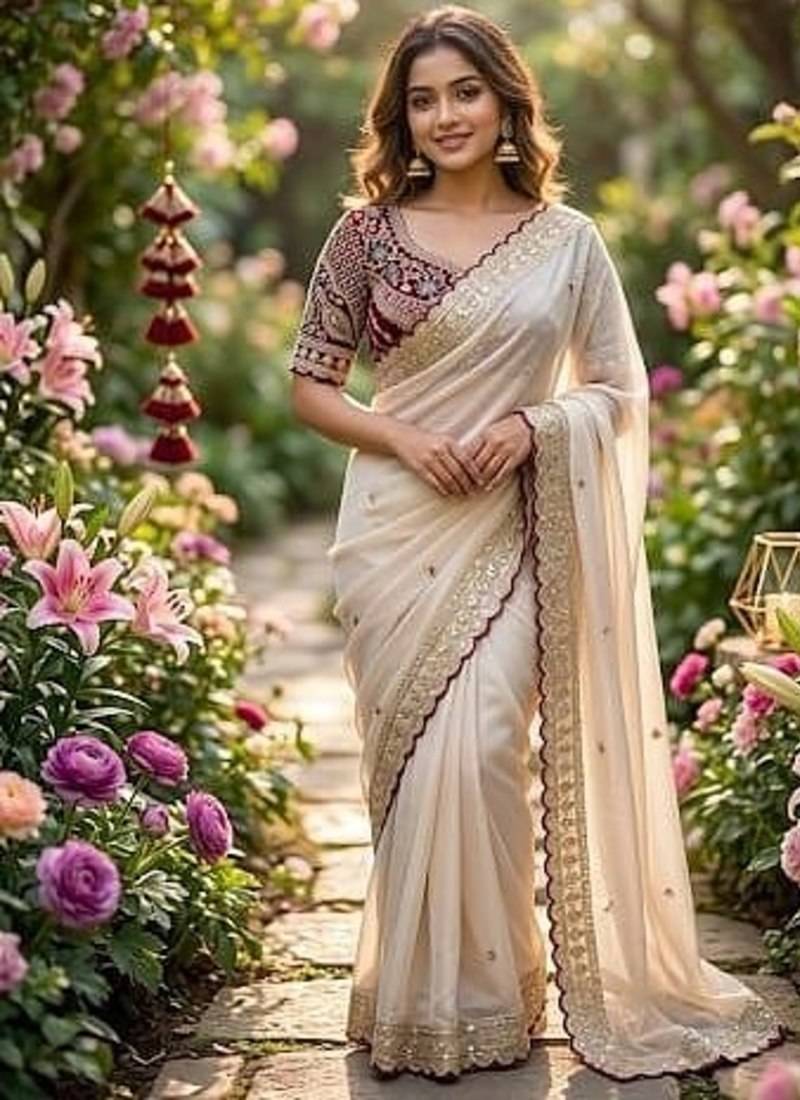 • Border : Designer Border • Fabric Of : Satin • Color : Off White Blouse Details