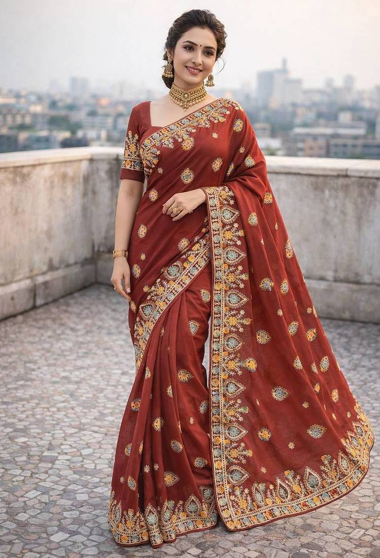 Saree :- Pure soft star Georgette silk fabric with thread work embroidered with piping border
