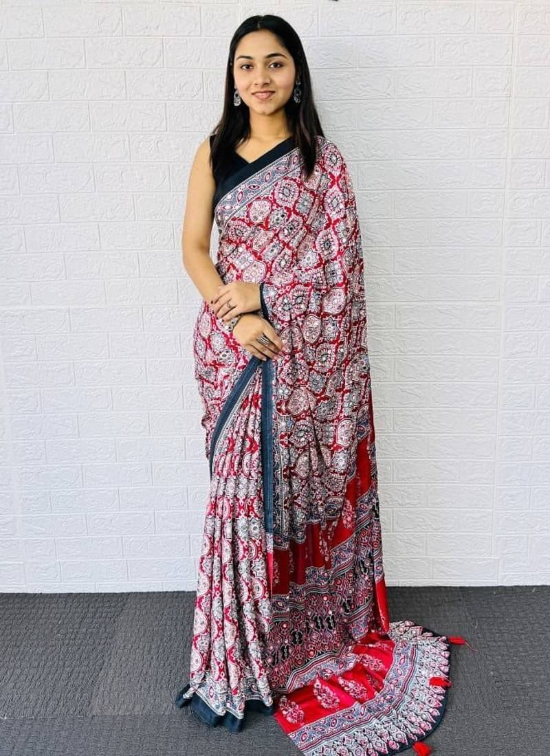 • Border : Heavy Border • Fabric Of : Satin • Color : Red Blouse Details