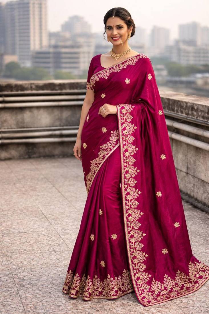 • Saree : Color- Wine / Fabric- Satin • Blouse : Color- Wine / Fabric- Satin Saree Details