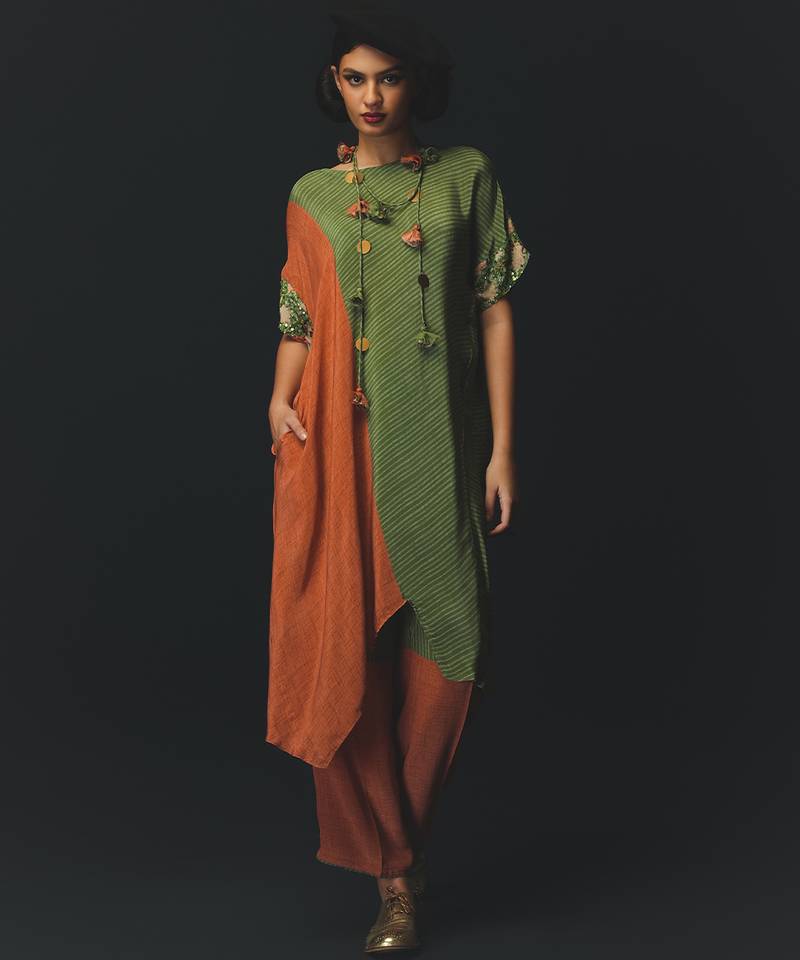 Radiate Festive Charm With This Green and Orange Embroidered Crepe Kurta Set, Crafted From Soft, Lightweight Fabric With A Graceful Drape. Vibrant Embroidery Adds A Lively And Elegant Touch, While The Comfortable Silhouette Ensures Effortless Wear. Perfect For Celebrations, Casual Gatherings, And Stylish Daytime Or Evening Occasions.