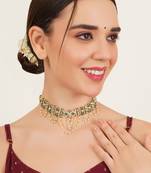 Statement choker-style necklace with traditional kundan & pearl detailing