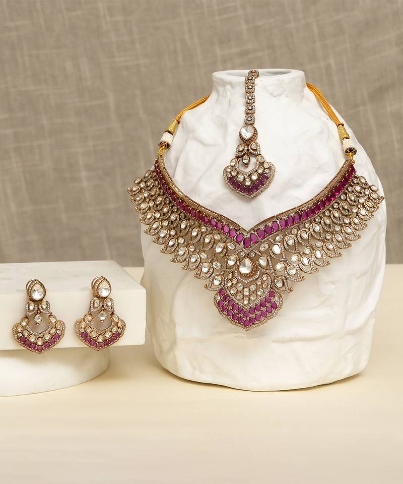Kundan red stones necklace set Is A Striking And Elegant Piece That Radiates Traditional Charm. Featuring Intricate Kundan Craftsmanship And Vibrant Red Stones, It Adds A Rich, Festive Touch To Any Ethnic Outfit. Perfect For Weddings, Celebrations, And Special Occasions, This Necklace Set Exudes Timeless Beauty And Sophistication.