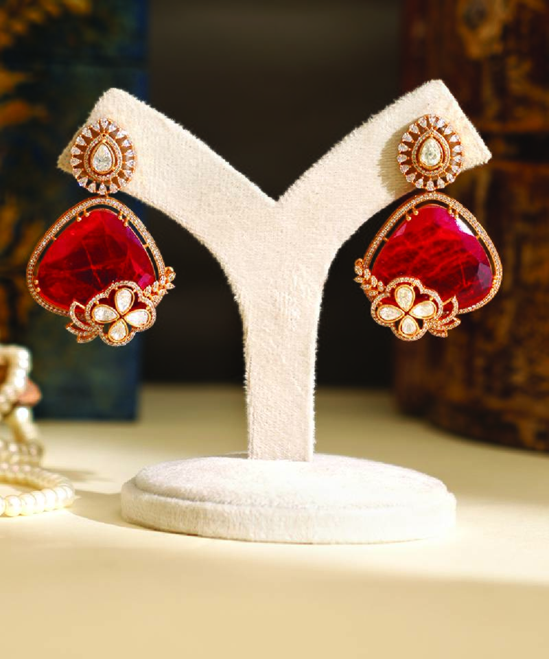 If you find the product for less we'll match it! Know MoreDesigned For Elegance, These Gold Plated Earrings With Red Stones Add A Bold And Vibrant Touch. The Classic Design Makes Them Suitable For Various Occasions, From Festive Gatherings To Casual Outings. A Versatile Accessory That Enhances Your Style With A Hint Of Sophistication.
