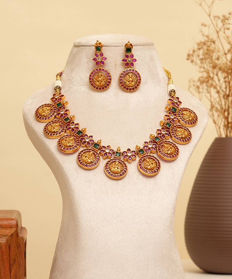 Gold Plated Temple Necklace Set