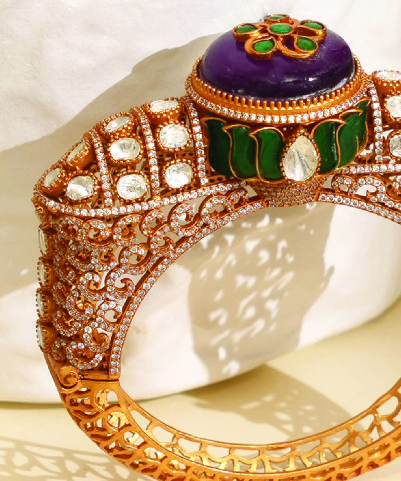 • Product Id : 4747311 • Package Details : 1 Kada • Type : Bridal Bangles & Bracelets For Women • Occasion : Wedding • Look : Traditional • Jewellery Work : American Diamonds • Color : Purple • Plating : Yellow Gold • Base Material : Copper Need Help ?About the Seller