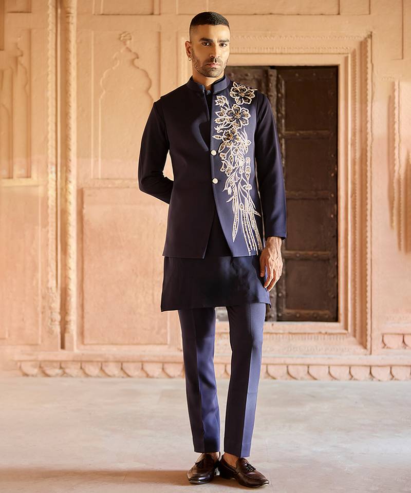 • Product Id : 4705343 • Package Details : 1 Kurta / 1 Nehru Jackt / 1 Pant • Type : Nehru Jacket • Occasion : Wedding • Fabric : Linen • Work : Embroidered • Look : Traditional • Color : Blue • Top Color : Blue • Top Fabric : Linen • Stitching : Stitched Payments [+]