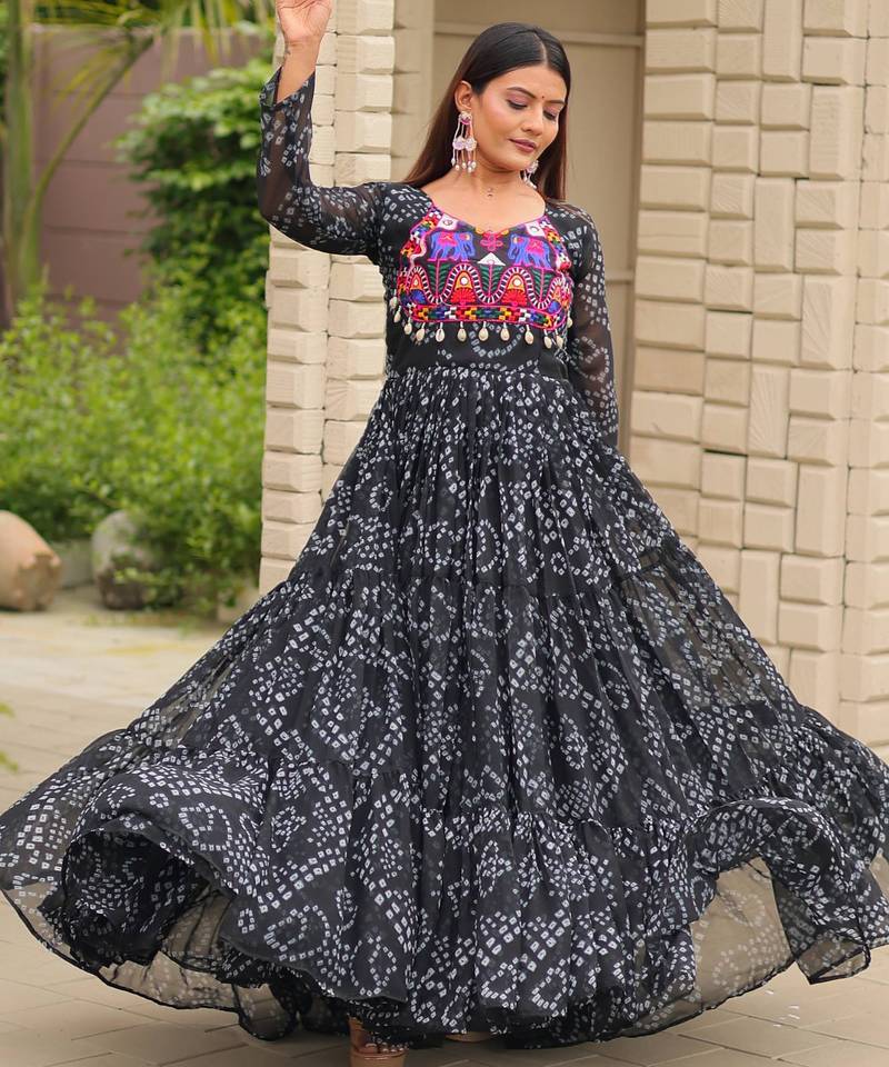 Black Festive Wear Designer Faux Georgette Embroidery Thread Work With Real Mirror & Codi Lace Readymade Suit Stitched