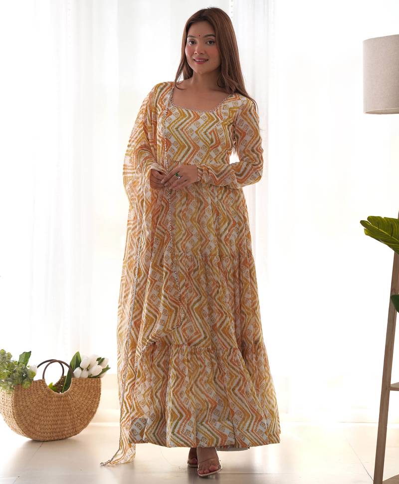 Beige Festive Wear Designer Heavy Pure Soft Organza Silk Hand Work Readymade Suit Stitched