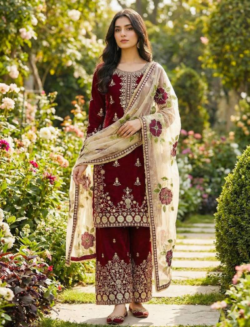 • Product Id : 4760473 • Package Details : 1 Top/1 Bottom/1 Dupatta • Type : Readymade Suits For Women • Look : Traditional • Sleeve : Quarter Sleeve • Fabric : Silk • Color : Maroon • Work : Work • Stitching : Stitched General - Color and Texture may have slight variation. This happens because of photography.