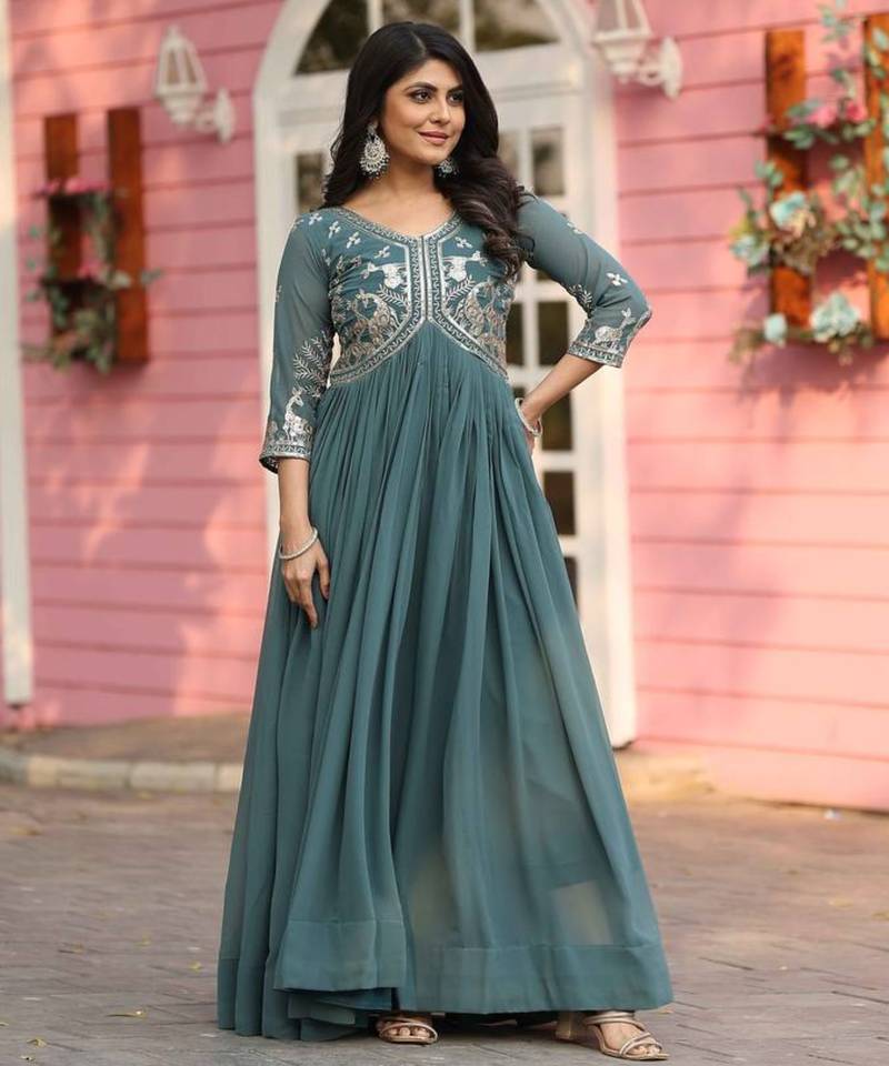 Mint Festive Wear Designer Fox Georgette Readymade Suit Stitched