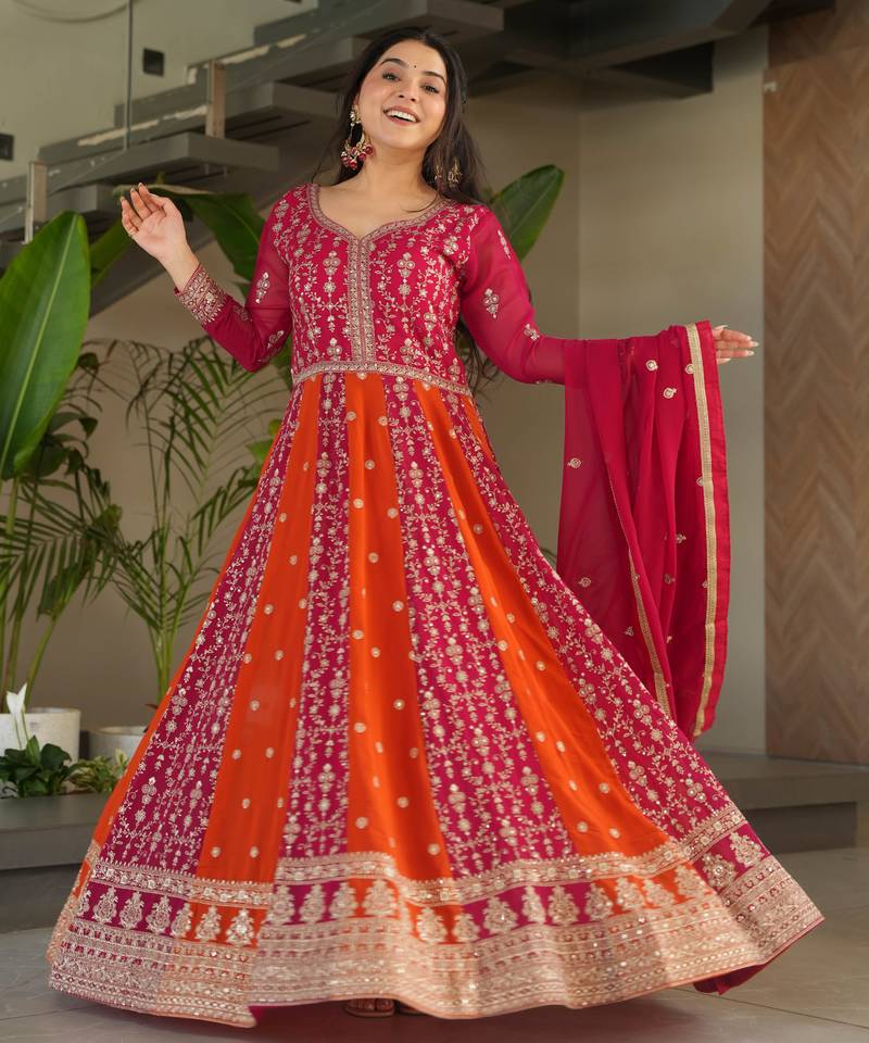 Multi Festive Wear Designer Faux Blooming Georgette Zari & Sequins Embroidered Work Readymade Suit Stitched