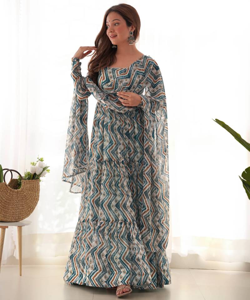 Multi Festive Wear Designer Heavy Pure Soft Fox Georgette Printed Work Readymade Suit Stitched