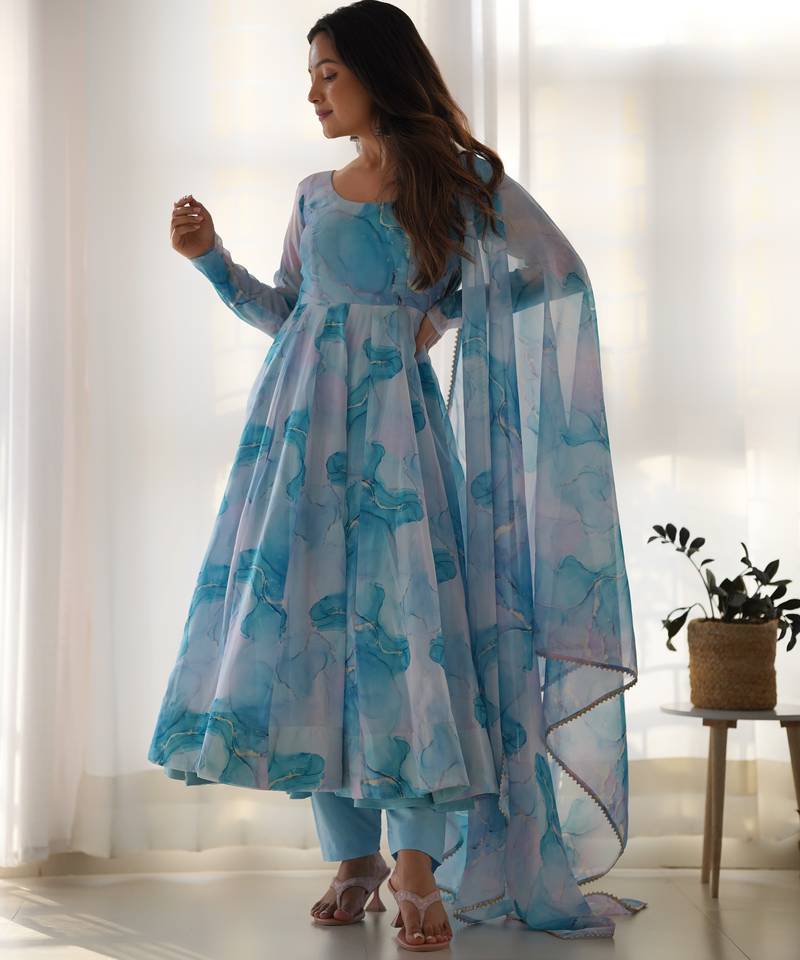 Multi Festive Wear Designer Heavy Pure Soft Organza Silk Readymade Suit Stitched