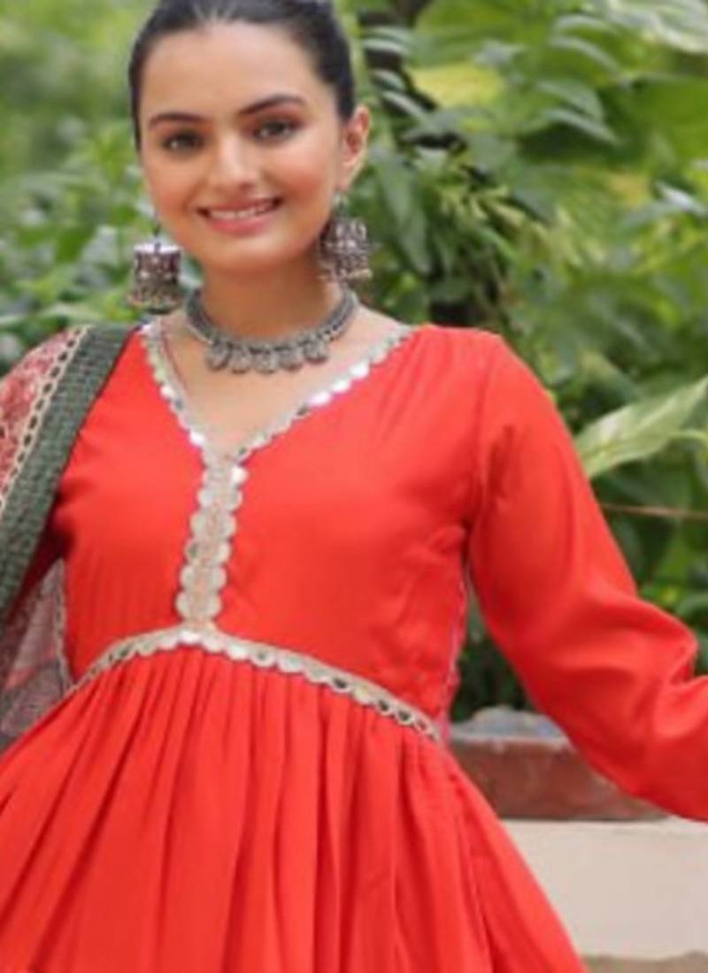 Orange Festive Wear Designer Roman Mirror Lace & Dori Jal Lace Work Readymade Suit Stitched