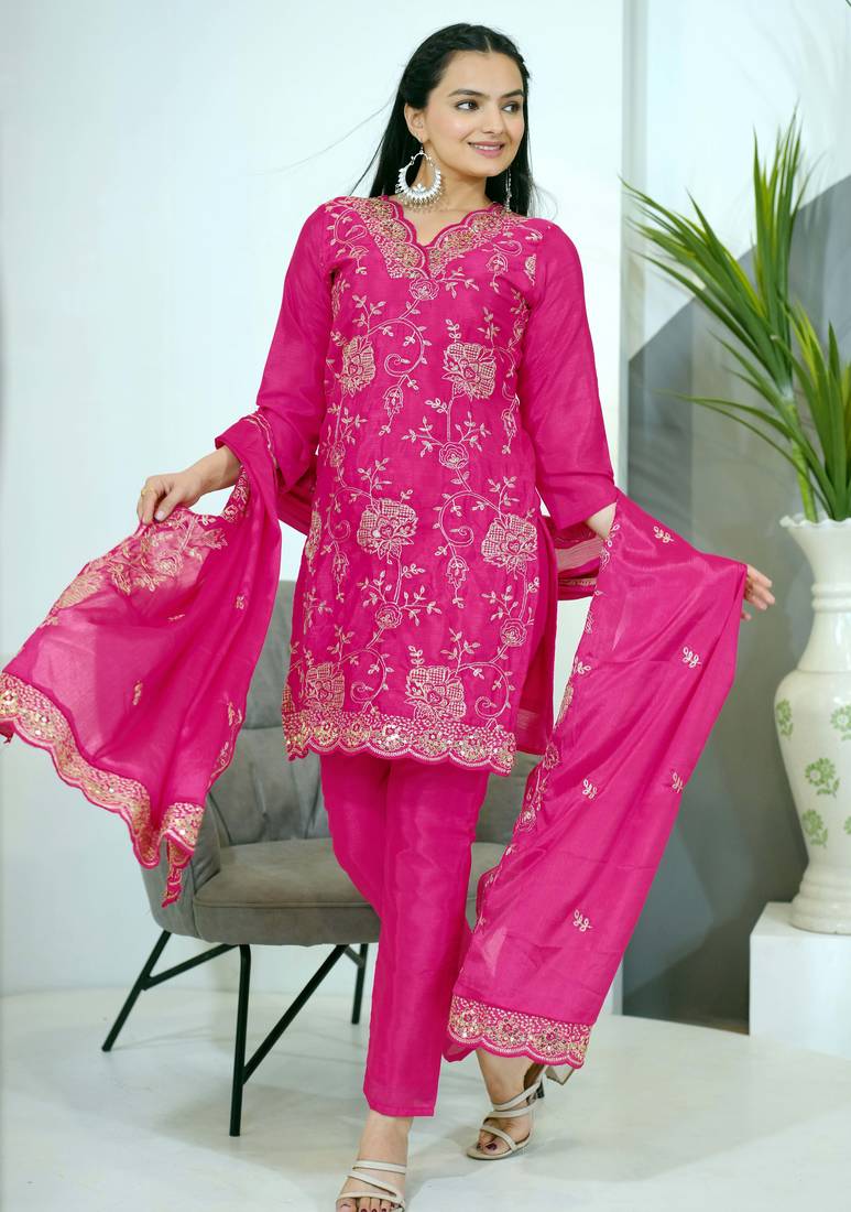 • Product Id : 4760174 • Package Details : 1 Top/1 Bottom/1 Dupatta • Type : Readymade Suits For Women • Look : Traditional • Sleeve : Quarter Sleeve • Color : Pink • Fabric : Fancy Fabric • Work : Work • Stitching : Stitched General - Color and Texture may have slight variation. This happens because of photography.