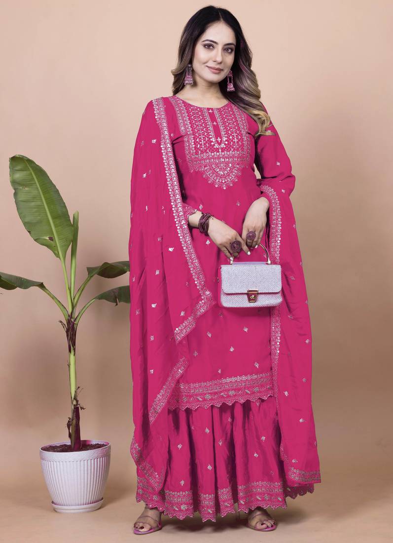 Pink Festive Wear Designer Chinon Sequence Embroidery Work Readymade Suit Stitched