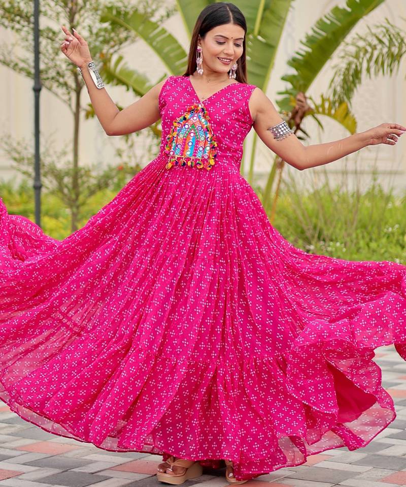 Pink Festive Wear Designer Faux Georgette Embroidery Thread Work With Real Mirror Work Readymade Suit Stitched