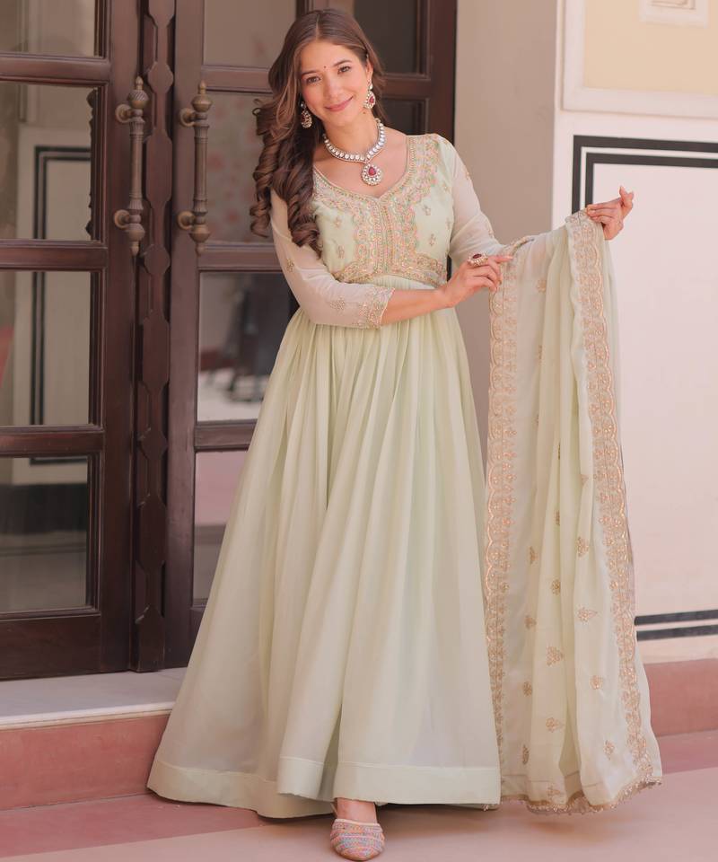 Pista Festive Wear Designer Star Georgette Sequence Multi Embroidered Work Readymade Suit Stitched