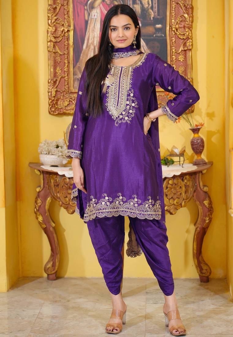 Purple Festive Wear Designer Chinon Sequence Embroidery Work Readymade Suit Stitched