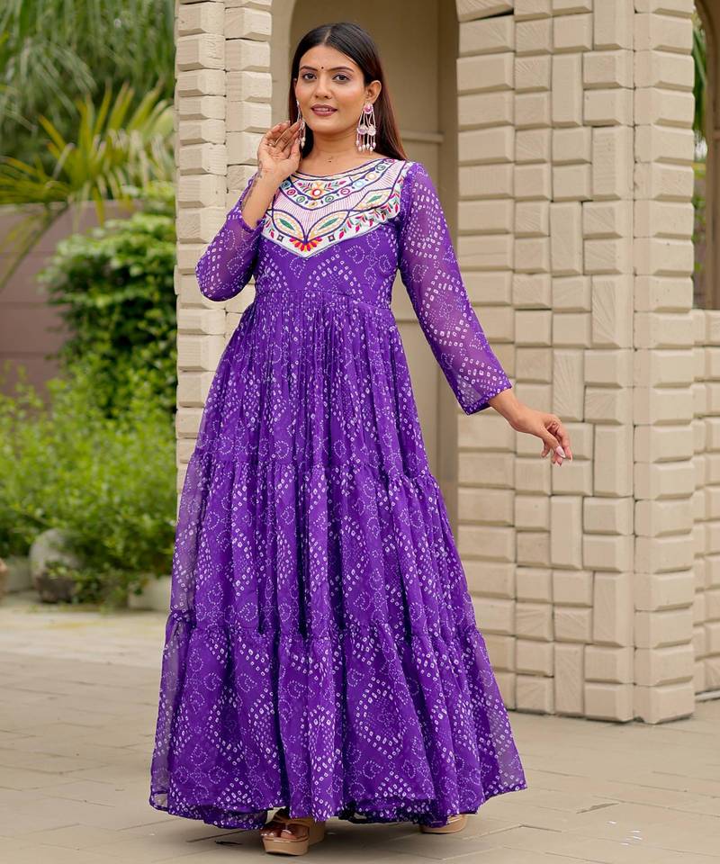 Purple Festive Wear Designer Faux Georgette Embroidery Thread Work With Real Mirror Work Readymade Suit Stitched