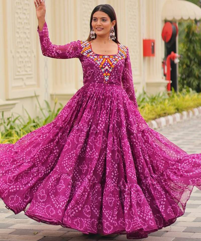 Purple Festive Wear Designer Faux Georgette Gamathi Work With Real Mirror Readymade Suit Stitched