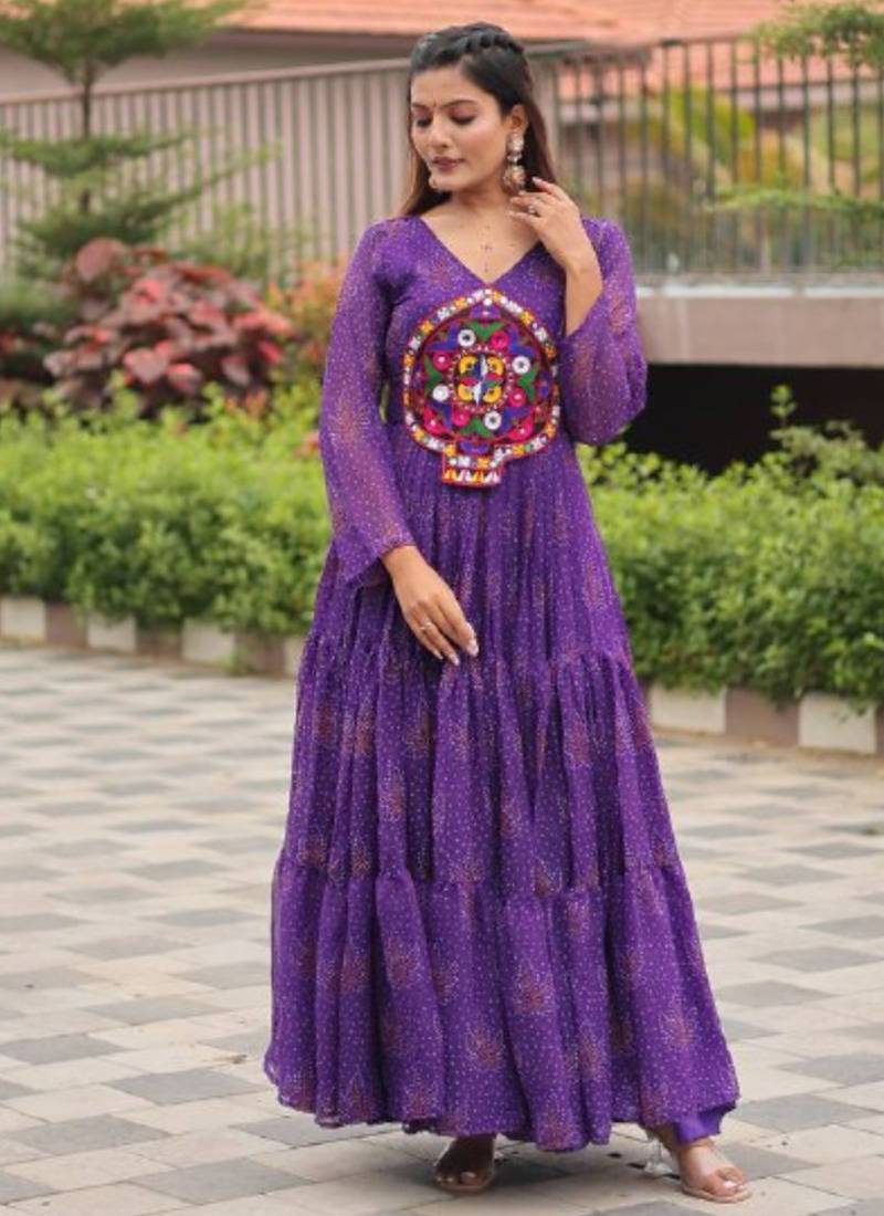 Purple Festive Wear Designer Faux Georgette Gamathi Work With Real Mirror Work Readymade Suit Stitched