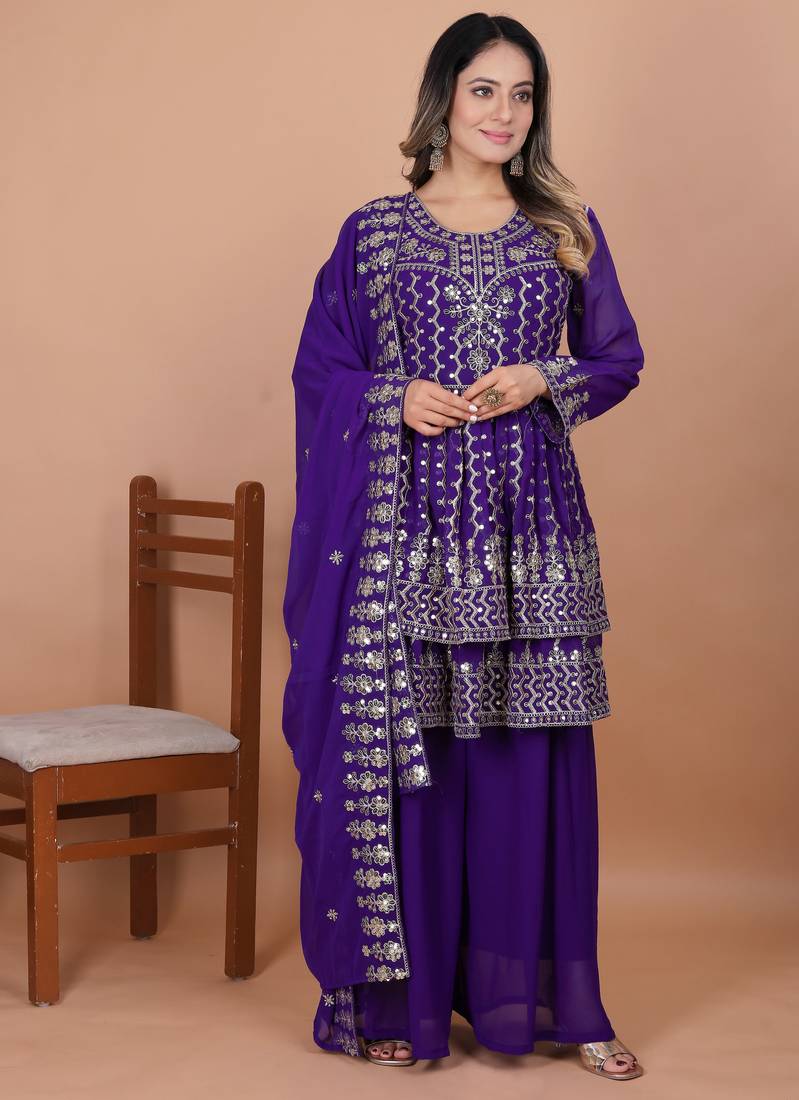 Purple Festive Wear Designer Fox Georgette Readymade Suit Stitched