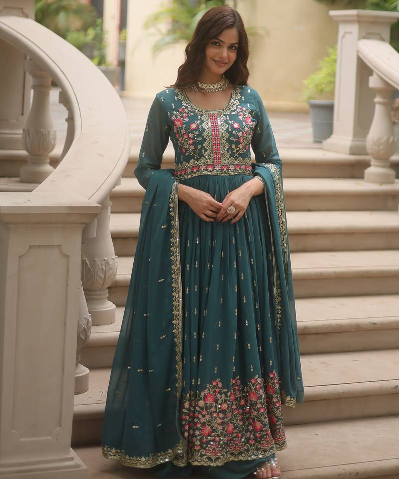 Rama Festive Wear Designer Faux Georgette Readymade Suit Stitched