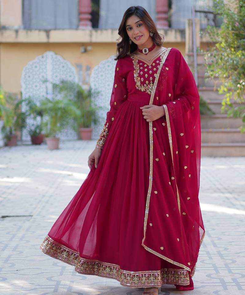 Ran Pink Festive Wear Designer Faux Blooming Georgette Readymade Suit Stitched