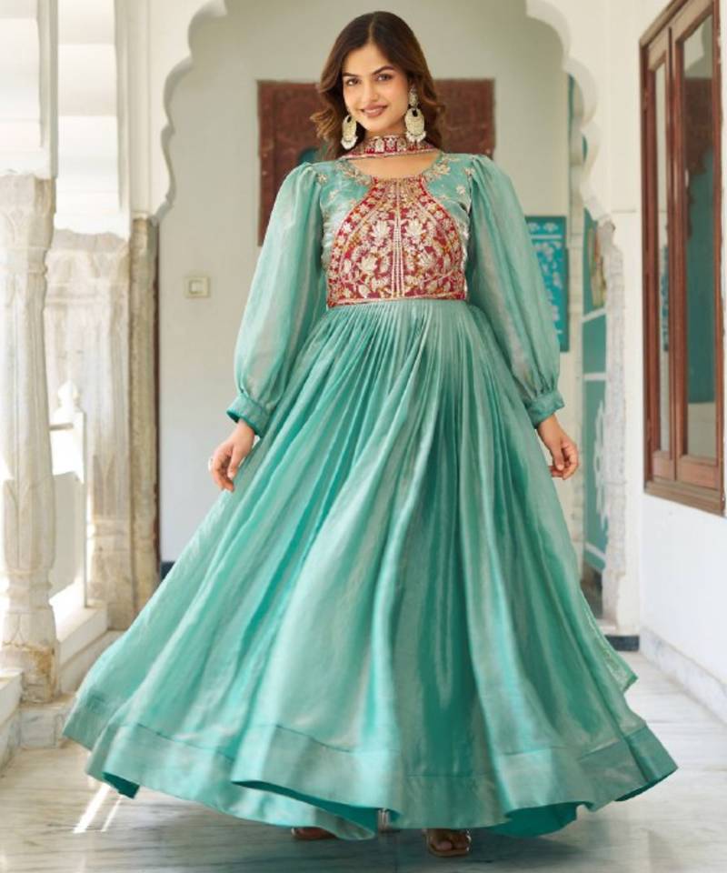 • Product Id : 4760430 • Package Details : 1 Top/1 Dupatta • Type : Readymade Suits For Women • Look : Traditional • Sleeve : Full Sleeve • Fabric : Silk • Color : Sky Blue • Work : Work • Stitching : Stitched General - Color and Texture may have slight variation. This happens because of photography.