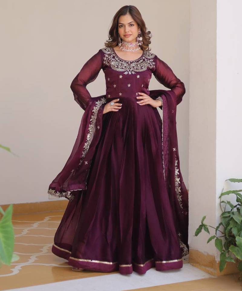 • Product Id : 4760220 • Package Details : 1 Top/1 Dupatta • Type : Readymade Suits For Women • Look : Traditional • Sleeve : Full Sleeve • Fabric : Silk • Color : Wine • Work : Work • Stitching : Stitched General - Color and Texture may have slight variation. This happens because of photography.
