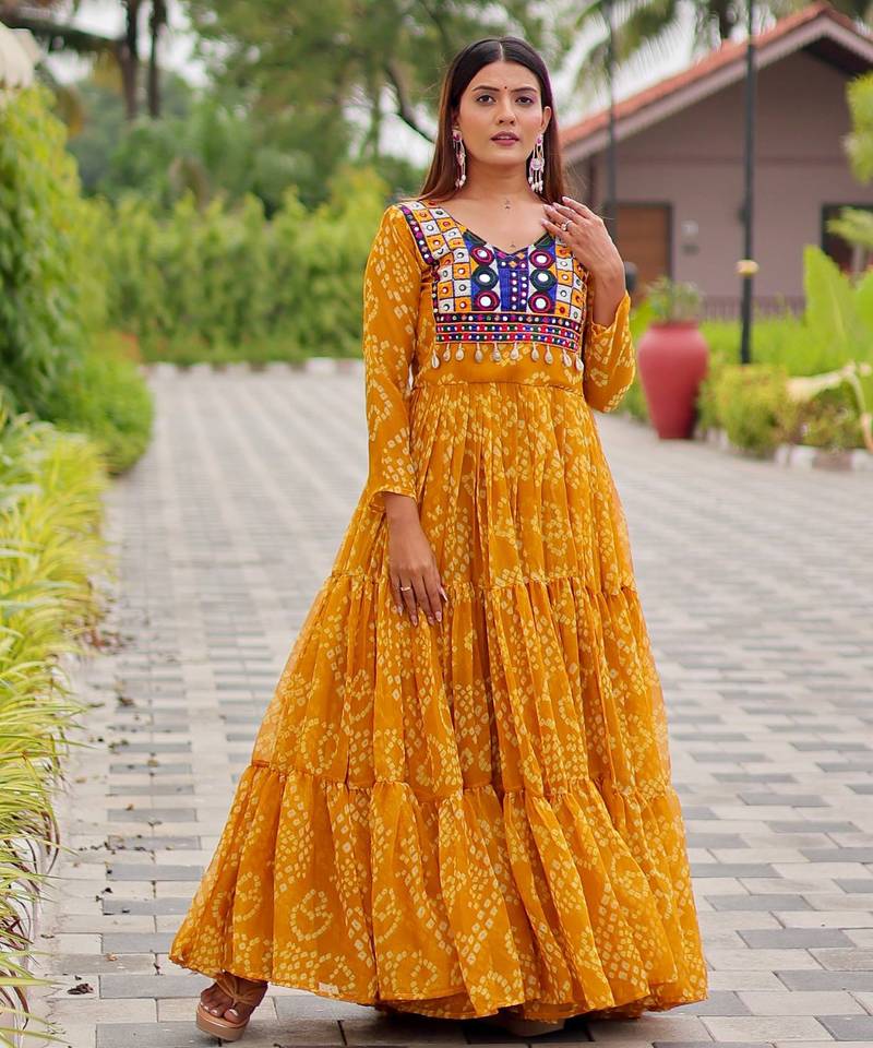 Yellow Festive Wear Designer Faux Georgette Embroidery Thread Work With Real Mirror & Codi Lace Readymade Suit Stitched