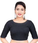 Fancy Round Neck Black Cotton Back Full Zipper Elbow Sleeves Readymade Long Blouse