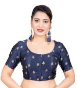 Navy Blue Dupion Silk Embroidered Elbow Sleeves Readymade Blouse