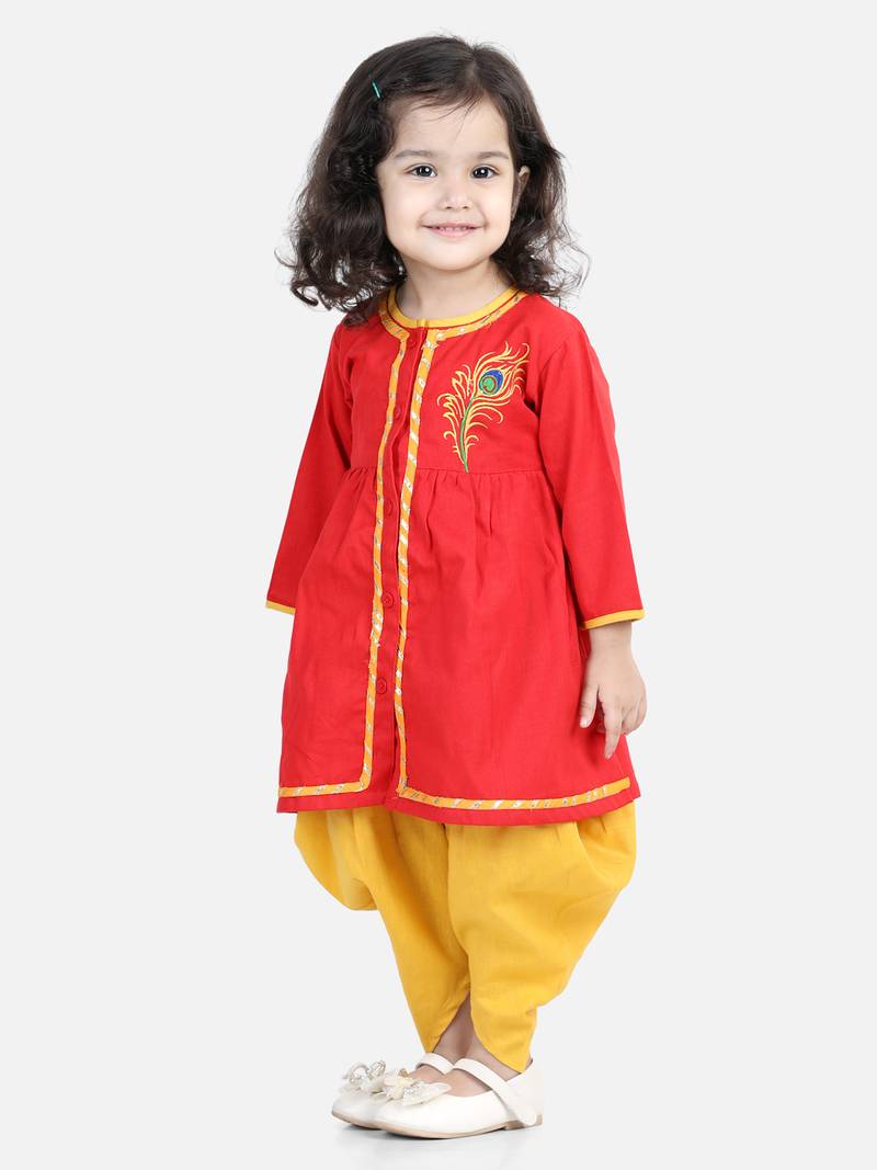 Bown Bee Cotton Embroidery Top Dhoti For Girls Red