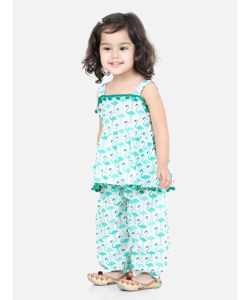 Bown Bee Flamingo Print Cotton Top Harem Set Green