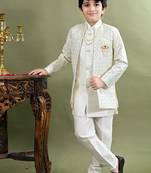 • Product Id : 4582028 • Package Details : 1 Sherwani, 1 Pant, 1 Shrug, 1 Necklace • Type : Kids Sherwani • Region : Other • Occasion : Wedding • Work : Embroidered • Type : Sequins Work • Look : Traditional • Bottom Style : Trouser • Sleeve : Full Sleeve • Neck Style : Chinese Collar Kameez • Bottom Fabric : Cotton Silk • Bottom Color : White • Top Color : White • Top Fabric : Cotton Silk • Stitching : Stitched • Gender : Boy Payments [+]